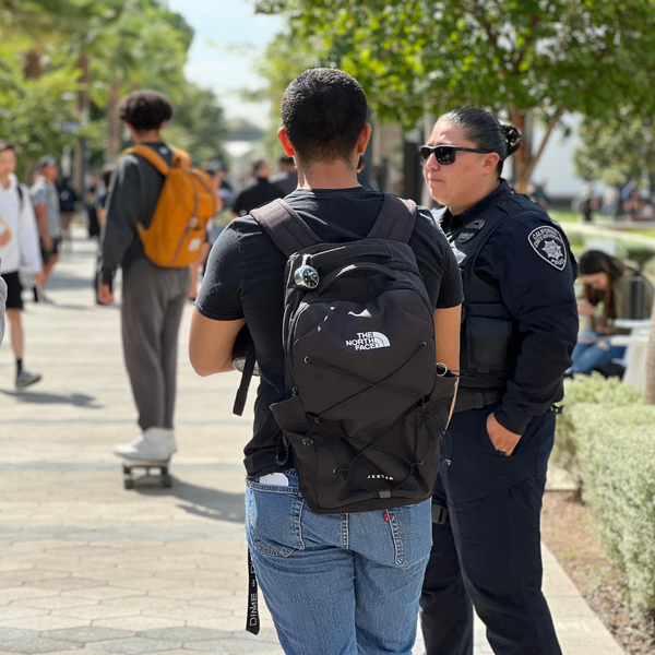 Professional • 2nd December 2025 Police Officer CSUF Police Department - Police officer speaking with community member during Paletas with CSUF PD event