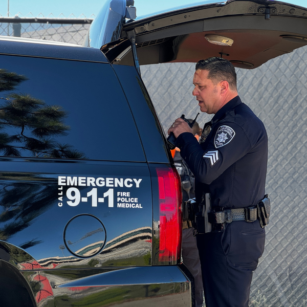 Professional • 3rd December 2025 Police Officer CSUF Police Department - A police sergeant standing by the mobile command post during mass casualty training