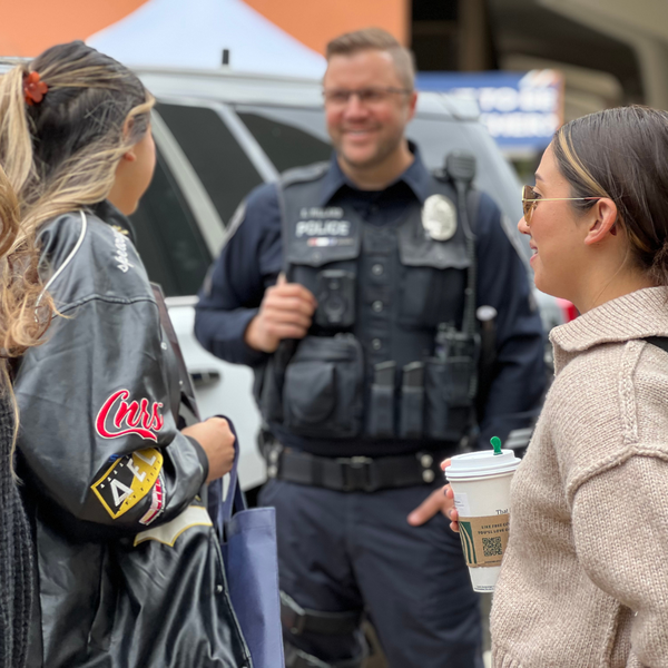 Professional • 2nd December 2025 Police Officer CSUF Police Department - Police officer speaking to community members at an event