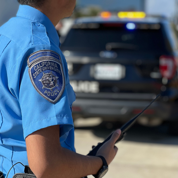 Professional • 2nd December 2025 Student Worker CSUF Police Department - Student Community Service Officer (CSO) walking by a police car